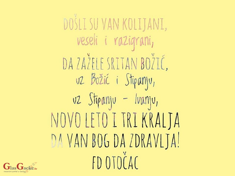 OTOČAC – Folklorno društvo Otočac je na svoj facebook stavilo doista jedinstvenu, ha, recimo božićnu čestitku s kolijanima. A što su to kolijani? Mnogima, posebno mlađima, ovaj pojam je vjerojatno posve nepoznat, a oni koji su bogati i prebogati godinama možda se i sjećaju da je netko nekada davno spominjao kolijane. A sam pojam možda će nekoga intuitivno podsjetiti na – kolendare, poglavito dubrovačke kolendare, i ne će pogriješiti. A odakle sada odjednom kolijani, i kako ih vezati za regiju Gacku?