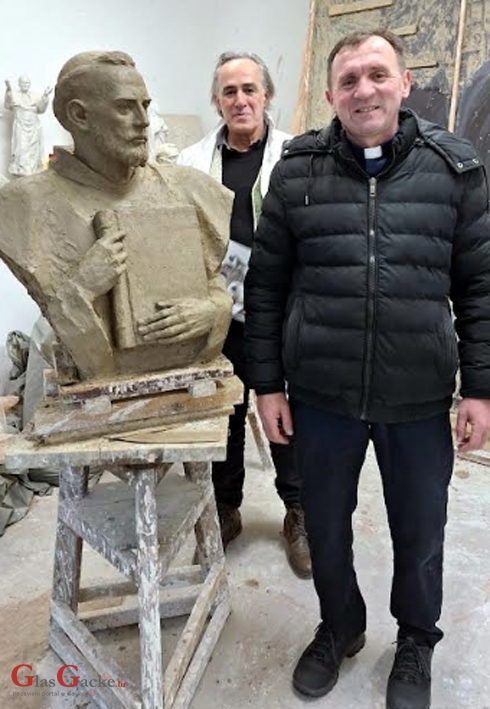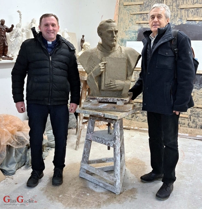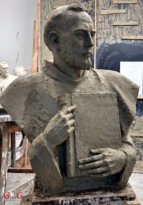 KOSINJ - Izrada spomenika prvom hrvatskom tiskaru Ambrozu Kacitiću ulazi u finalnu fazu. Dovršen je glineni model u stvarnoj veličini poprsja, koji ovih dana ide u lijevanje u gips. Potom će se na gipsani kalup dodati reljefna slova kolofona Prvotiska, da bi na kraju sve skupa išlo u lijevanje u broncu.