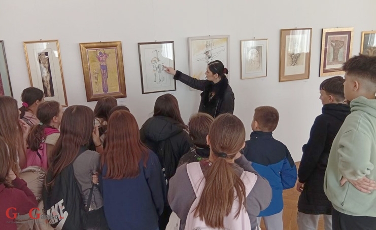 Učenike je dočekala Marija Uzelac, kustosica i povjesničarka umjetnosti koja im je ukratko na zanimljiv način ispričala priču u nastanku zbirke i njenim autorima. Moj križ svejedno gori naziv je izložbe slika iz zbirke Anđelka Zdeslava Kaćunka, otočkoga kapelana, koja je 12. ožujka otvorena u Učilištu.