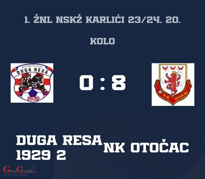DUGA RESA - Prednatjecatelji Nogometnoga kluba Otočac u 20. kolu odigrali su jučer utakmicu protiv vršnjaka Nogometnoga kluba Duga Reda 1929 2.