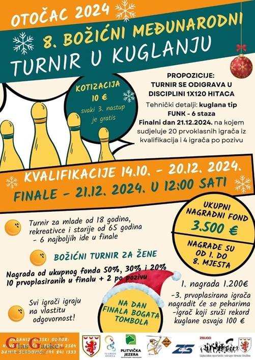 OTOČAC - Zajednica športskih udruga grada Otočca organizira 8. međunarodni Božićni turnir u kuglanju. Prijave za sudjelovanje su u tijeku.