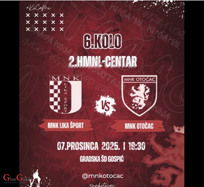 GOSPIĆ – U športskoj dvorani u Gospiću odigrana je utakmica između Malonogometnoga kluba Lika šport i Malonogometnoga kluba Otočac. Utakmica je završila pobjedom Ličana rezultatom 5 : 3.