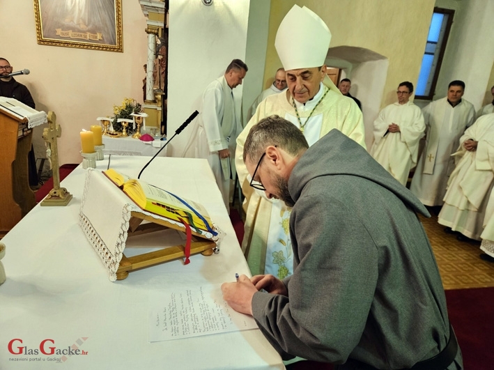 DONJI KOSINJ - Biskup Marko Medo predvodio je jučer u župnoj crkvi sv. Ivana Krstitelja u Donjem Kosinju svečano misno slavlje tijekom kojega je brat Marinko od Presvetog Imena Isusovog Klaić položio doživotne zavjete čistoće, siromaštva i poslušnosti. Time se trajno posvetio Bogu u pustinjačkom životu na području Gospićko-senjske biskupije, postavši prvi pustinjak te mjesne Crkve.