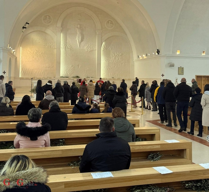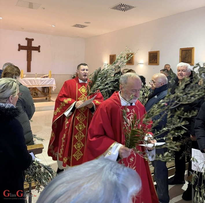 UDBINA – Jučer je na Udbini u crkvi Hrvatskih mučenika slavljen blagdan Cvjetnice. Blagoslov maslinovih grančica bio je u dnevnoj kapeli, a onda je vjerni narod u procesiji, kroz snijeg, ušao u crkvu, gdje je služena misa.