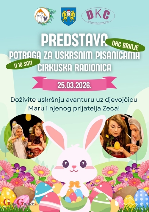 BRINJE - 25. ožujka u 10 sati u Društveno-kulturnom centru bit će prikazana predstava pod nazivom Potraga za uskrsnim pisanicama i cirkuskoj radionici za najmlađe.