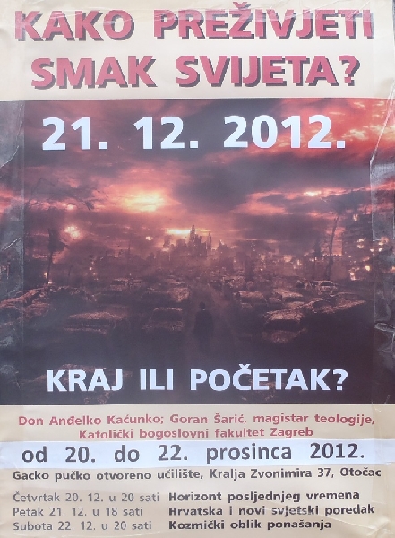 Kako preživjeti smak svijeta? Kraj ili početak? - naziv je trodnevne tribine što će se ovog vikenda održati u Gackom pučkom otvorenom učilištu.