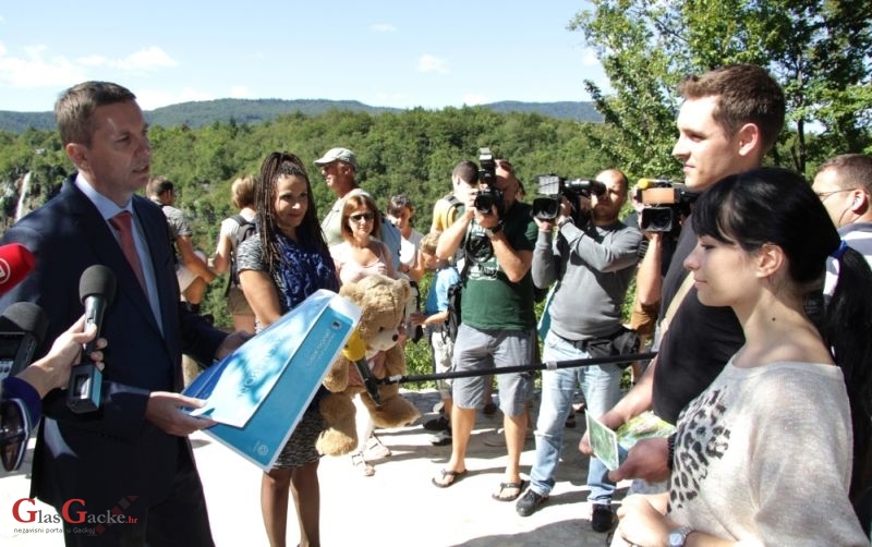 Pomoćnik ministra zaštite okoliša i prirode, Nenad Strizrep, i ravnateljica NP Plitvička jezera, Lidija Bertović, milijuntoj posjetiteljici uručili su prigodne darove - godišnju ulaznicu za NP Plitvička jezera za dvije osobe te sedmodnevni boravak za dvije osobe u hotelu Jezero na Plitvicama.