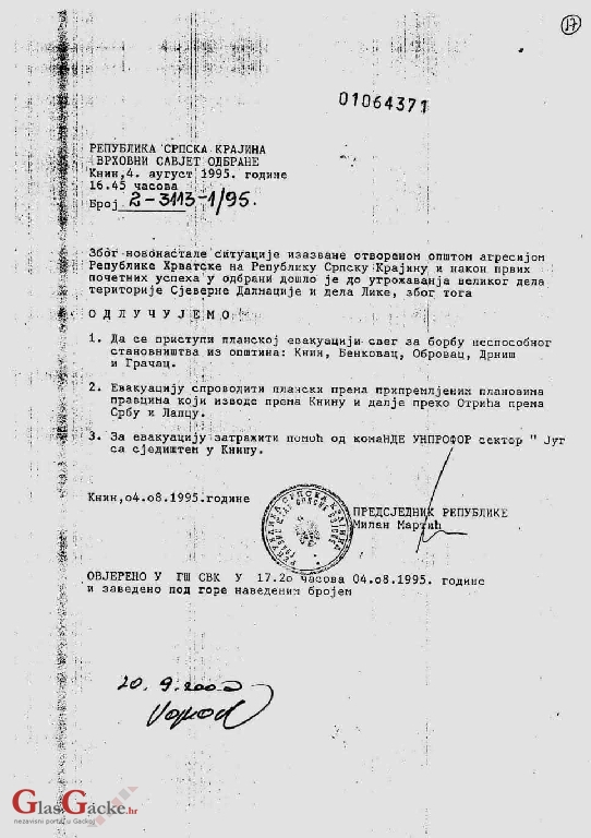 Ovome, kao potvrda, može poslužiti i fotokopija odluke tzv. predsjednika Milana Martića od 4. kolovoza 2025.