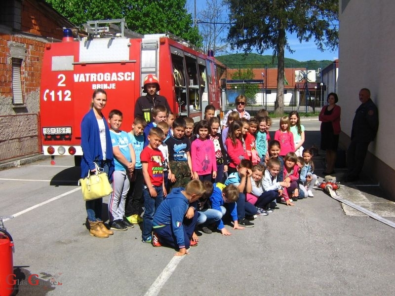Dana 7.5.2015. godine u vatrogasnom domu bilo je neobično veselo i živo. U sklopu aktivnosti u mjesecu zaštite od požara, DVD Brinje posjetila su djeca 1. i 2. razreda OŠ Luke Perkovića u pratnji svojih učiteljica te proveli zanimljiv školski sat s vatrogascima. Vatrogasci su učenicima pokazali prostorije, opremu, vozila i sve za djelovanje u hitnim situacijama požara i ostalih nepogoda. Nakon demonstracije, učenici su se okušali u popularnoj vježbi vatrogasne mladeži s brentačama, kojoj su se najviše obradovali.