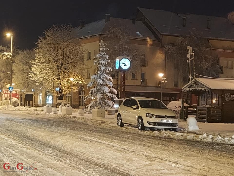 OTOČAC – Otočac utonuo u zimsku noć. Usnuo. Gradska rasvjeta i gradska ura samo pojačavaju taj dojam. Osobito božićni bor okićen obiljem snijega. Prava bi šteta bila da je već uklonjen, ovako pridonosi atmosferi. Jest da snijeg nije neko obilje, ali samo da se zna – zima je. Taman ga je toliko da stvori ugođaj. I stvorio je.