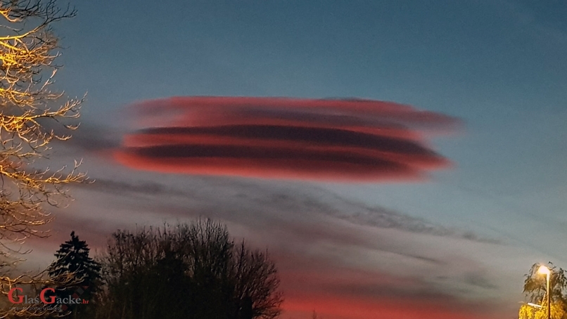 Evo, tako je jučer u suton snimljena ova dojmljiva fotografija nad Otočcem, gdje su svu pozornost privukli crvenkasti oblaci neobična oblika. Kao da je neki umjetnik uzeo široki kist i nekoliko puta nehajno povukao njime po fotografiji. Gotovo na posve modernistički način kakav u umjetnosti nije nepoznanica.