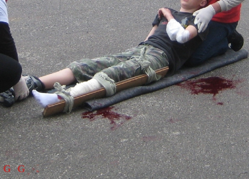 Drugi dio natjecanja bio je praktičan i odvijao se u malom parku kod autobusnog kolodvora. Taj dio natjecanja sastojao se od dva radilišta na kojemu su se nalazile po tri unesrećene osobe (koje su 'glumili' srednjoškolci). Djelatnice Crvenog križa vješto su napravile replike ozljeda koje se ni po čemu nisu razlikovale od pravih ozljeda. Odmah nakon dolaska na radilište, natjecatelji su pohitali pomoći unesrećenim osobama. Svoj zadatak izvršili su vrlo ozbiljno baš kao da se radi o pravim ozljedama.