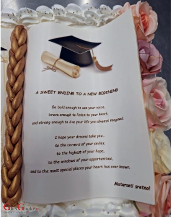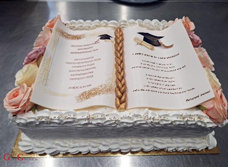 Tortom može biti poslana poruka, može torta biti i čestitka. Može biti u obliku koji se želi, baš kao ova koja je pripravljena za ovogodišnju maturalnu zabavu otočkih maturanata. Knjiga je to, knjižurina, lijepo piše tko je sve na maturalnoj zabavi, pa poruka maturantima, sve piše samo treba znati čitati. I na kraju – sve je jestivo, i knjiga, i pismo i slova, i poruka.