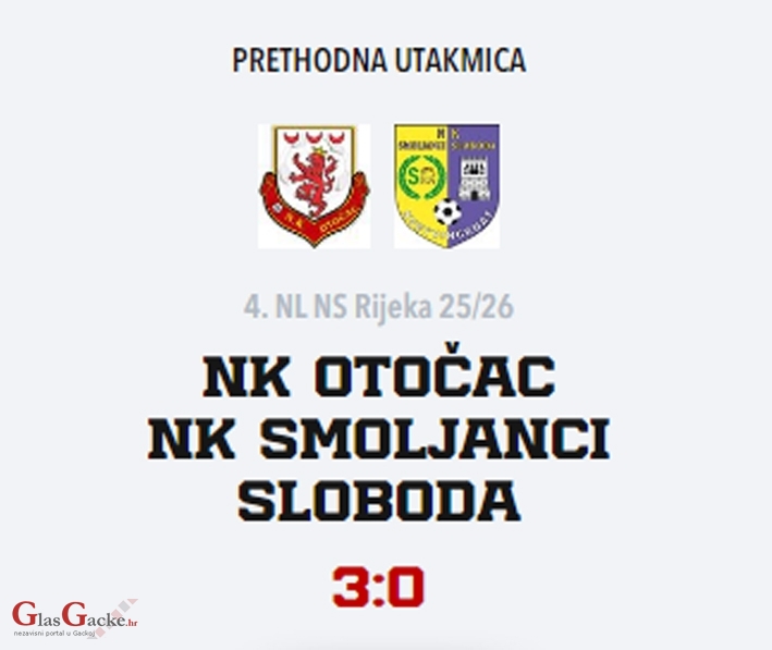 OTOČAC - Jučer je na stadionu u Otočcu odigrana utakmica između Nogometnoga kluba Otočac i Nogometnoga kluba Smoljanci Sloboda. Utakmica je završila pobjedom Gačana, rezultatom 3 : 0.